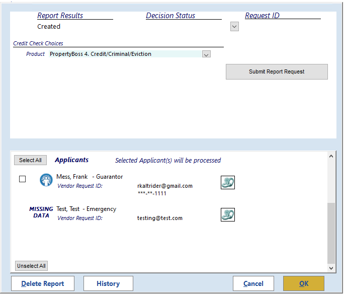- Double-click on the contact’s name. A small window called Credit Report Applicant opens.